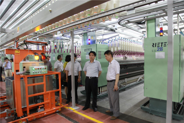 匯報會上,紡織染公司總經(jīng)理徐憲華就崇天紡紗7.8萬枚環(huán)錠紡項目推進發(fā)展情況進行了詳細介紹。中國棉紡織行業(yè)協(xié)會朱北娜會長,江南大學(xué)高衛(wèi)東副校長、開發(fā)區(qū)管委會羌強主任,經(jīng)信委閆靜翔副主任分別致辭,認為南通崇天環(huán)錠紡紗項目目標定位準、起點高、實施效果好,具有樣板示范效應(yīng),其先進程度完全符合國家提倡的《中國制造2025》制造業(yè)智能化生產(chǎn)的總體要求,是棉紡行業(yè)技術(shù)改造和轉(zhuǎn)型升級的標桿。