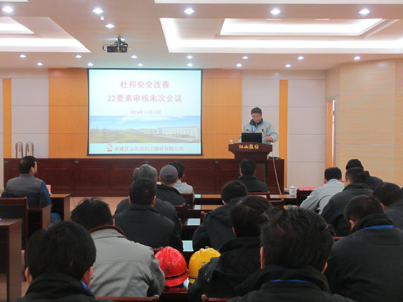 12月12日下午,杜邦安全改善項(xiàng)目年度審核末次會(huì)議在江山股份西區(qū)6號(hào)會(huì)議室召開(kāi)。該公司總經(jīng)理薛健發(fā)表重要講話。 12月8日至11日,杜邦審核老師對(duì)我公司杜邦安全改善項(xiàng)目進(jìn)行階段性審核。本次審核依據(jù)的是杜邦安全管理系統(tǒng)的行為安全(安全文化機(jī)制)和工藝安全(風(fēng)險(xiǎn)管理機(jī)制)22要素審核清單。審核老師主要通過(guò)訪談、查閱、觀察三種方法了解公司當(dāng)前的HSE管理現(xiàn)狀,并進(jìn)行審核評(píng)分。