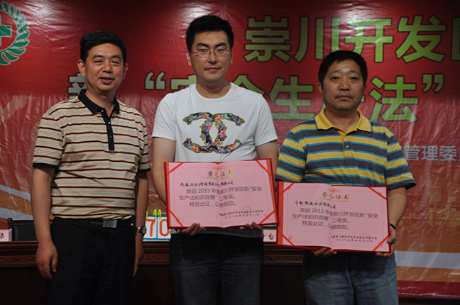 由崇川開發(fā)區(qū)安全生產(chǎn)委員會(huì)組織的新“安全生產(chǎn)知識(shí)競(jìng)賽”于6月11日下午在金通靈公司舉行,南通紡織控股集團(tuán)紡織染有限公司由陳杰明帶隊(duì),陳云莉、王建興、吉王倩三人組成的代表隊(duì)參加了此次比賽。經(jīng)過緊張激烈的角逐,最終,紡織染代表隊(duì)榮獲比賽二等獎(jiǎng),南通崇川區(qū)安全監(jiān)督局副主任毛長(zhǎng)平為我公司獲獎(jiǎng)隊(duì)員頒發(fā)了榮譽(yù)證書。