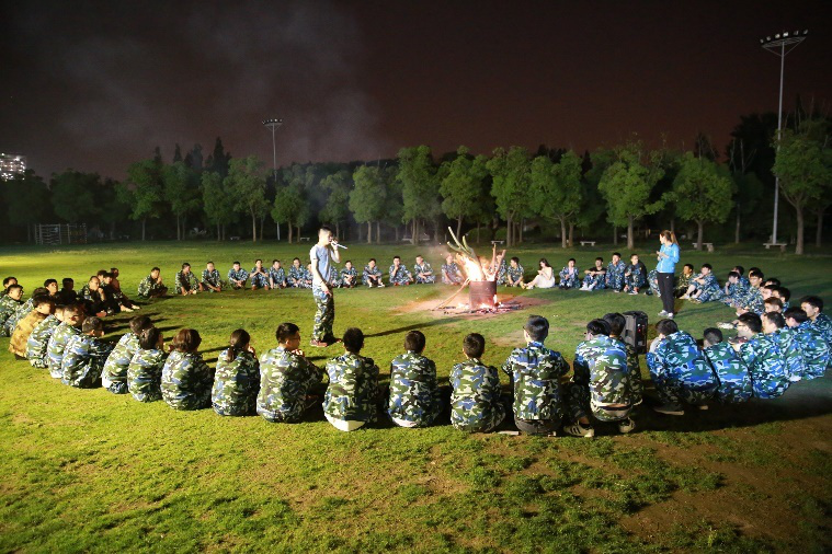 夜幕逐漸降臨,在篝火晚會(huì),江山新人載歌載舞,在歡聲笑語(yǔ)中更加熟悉與親密。