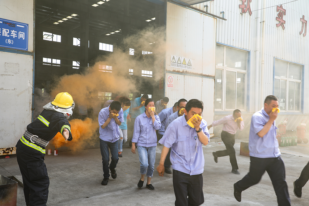 隨后,進行了 “安全生產(chǎn)月”主題橫幅簽名活動和全體人員合影。在啟動儀式當天,南通機床還組織開展了消防應急演練,其內(nèi)容包括人員應急疏散、傷員急救、微型消防站演練、100米接力滅火等消防救援項目。天生港消防救援中隊李隊長就南通機床應急演練作了點評,他要求每位參與者學會滅火器正確使用方法,掌握火場逃生基本常識,提高自我保護意識,化解風險自救能力,達到應急演練的預期目的。 儀式最后,南通市港閘區(qū)安監(jiān)局丁德勝作出指示:企業(yè)員工要以高度負責的主人翁精神,主動擔當安全生產(chǎn)作為。企業(yè)領(lǐng)導層要正確處理好企業(yè)發(fā)展與安全生產(chǎn)的關(guān)系,堅決防范和杜絕重特大安全生產(chǎn)事故的發(fā)生。時刻保持敬畏之心,排查隱患、堵塞漏洞,進一步夯實安全生產(chǎn)基礎(chǔ)。同時要加強隊伍建設(shè),強化作風錘煉,注重培訓演練,提高防災減災救災能力。