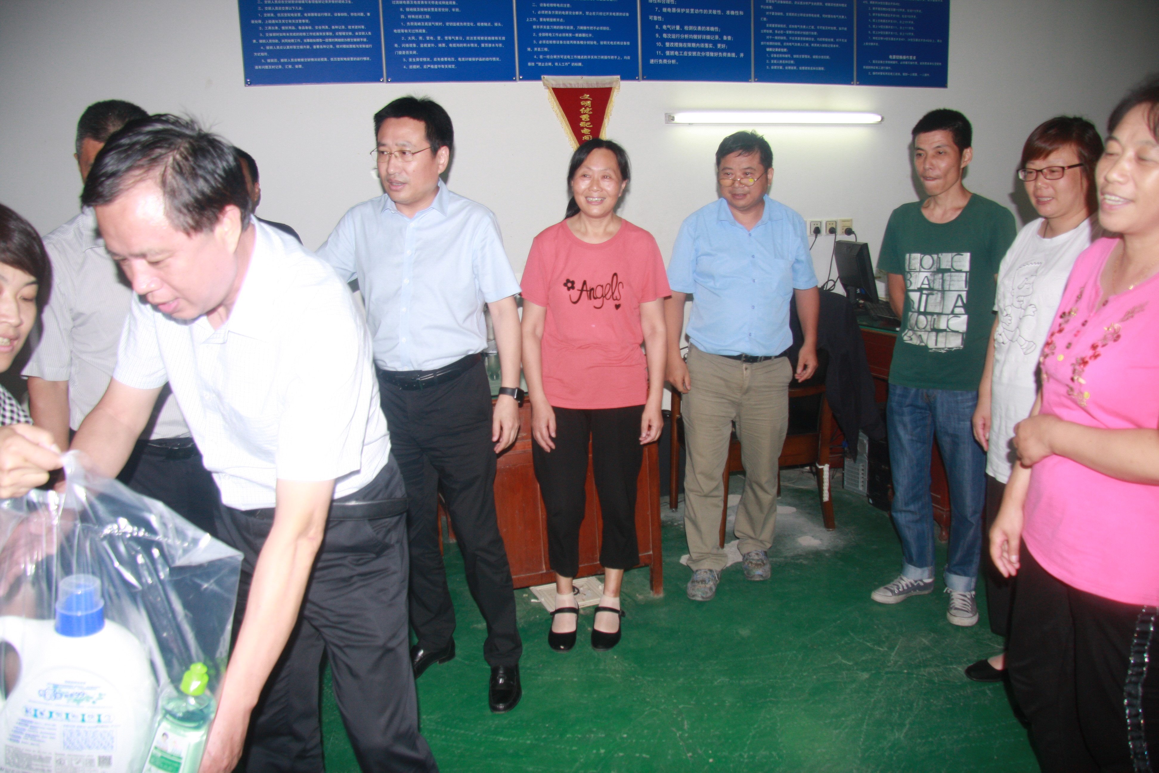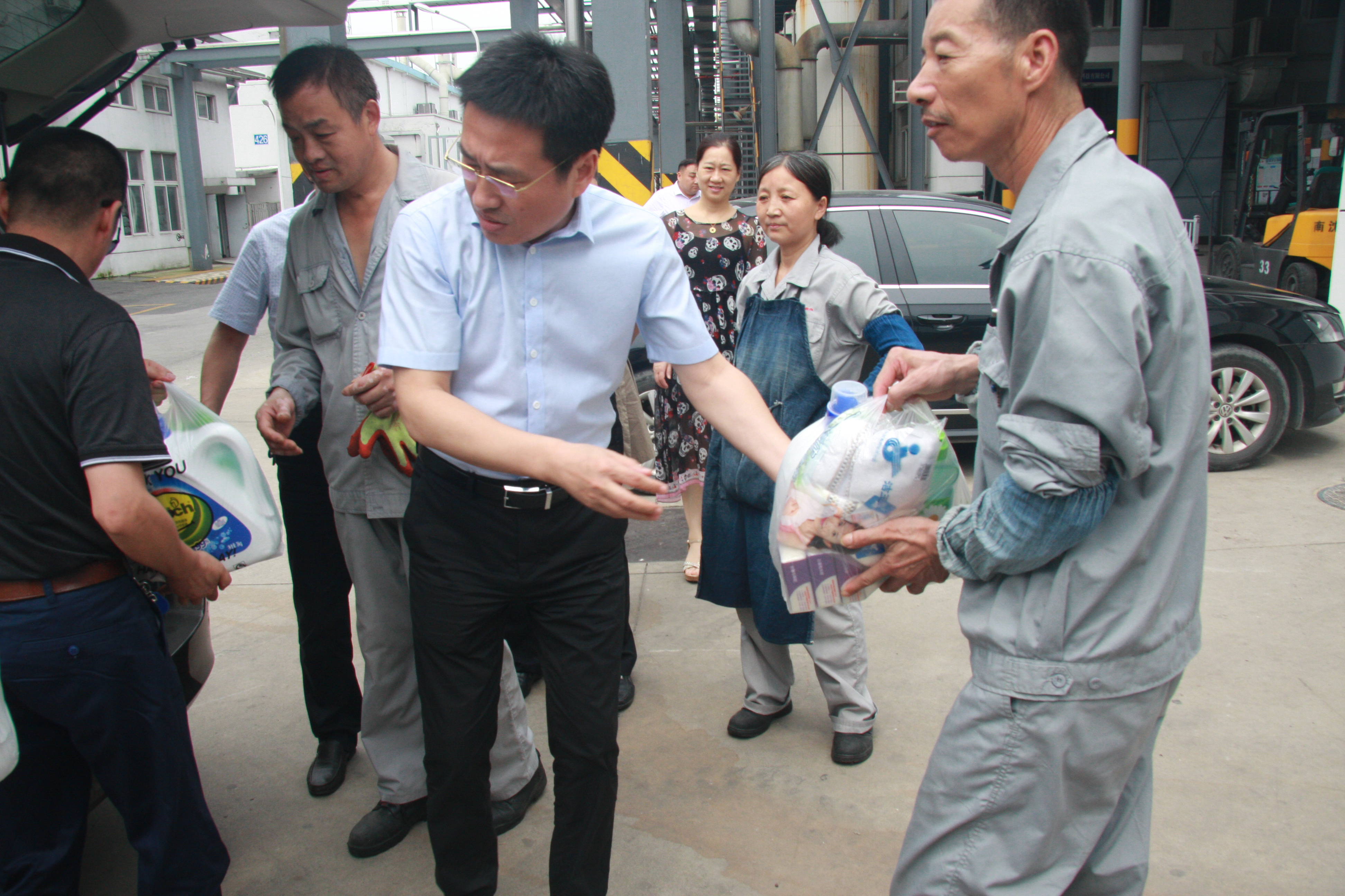 慰問組一行先后到江山農(nóng)化生產(chǎn)車間、興盛木業(yè)制造廠房、以及公司管理的三個(gè)園區(qū):軟件園、飛越百度文化廣場、石化園區(qū),分別給一線生產(chǎn)車間職工、園區(qū)一線工作人員送去防暑用品,并詳細(xì)了解了一線職工工作環(huán)境和生活情況,對(duì)他們辛勤的付出表示感謝,叮囑大家在做好工作的同時(shí),一定要注意防暑,確保安全,保重身體。