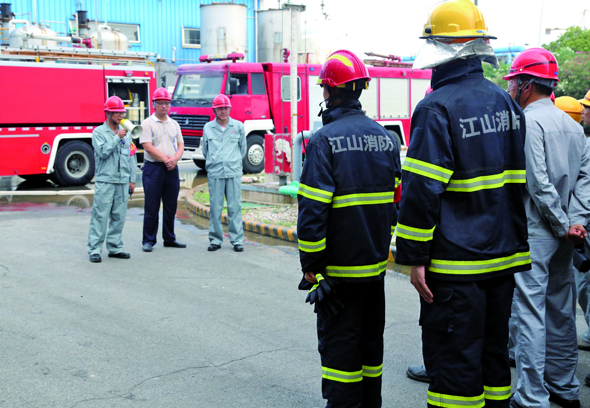 開發(fā)區(qū)環(huán)保局副局長孫同志,江山股份董事長兼總經(jīng)理、黨委書記薛健參加了演練全過程。