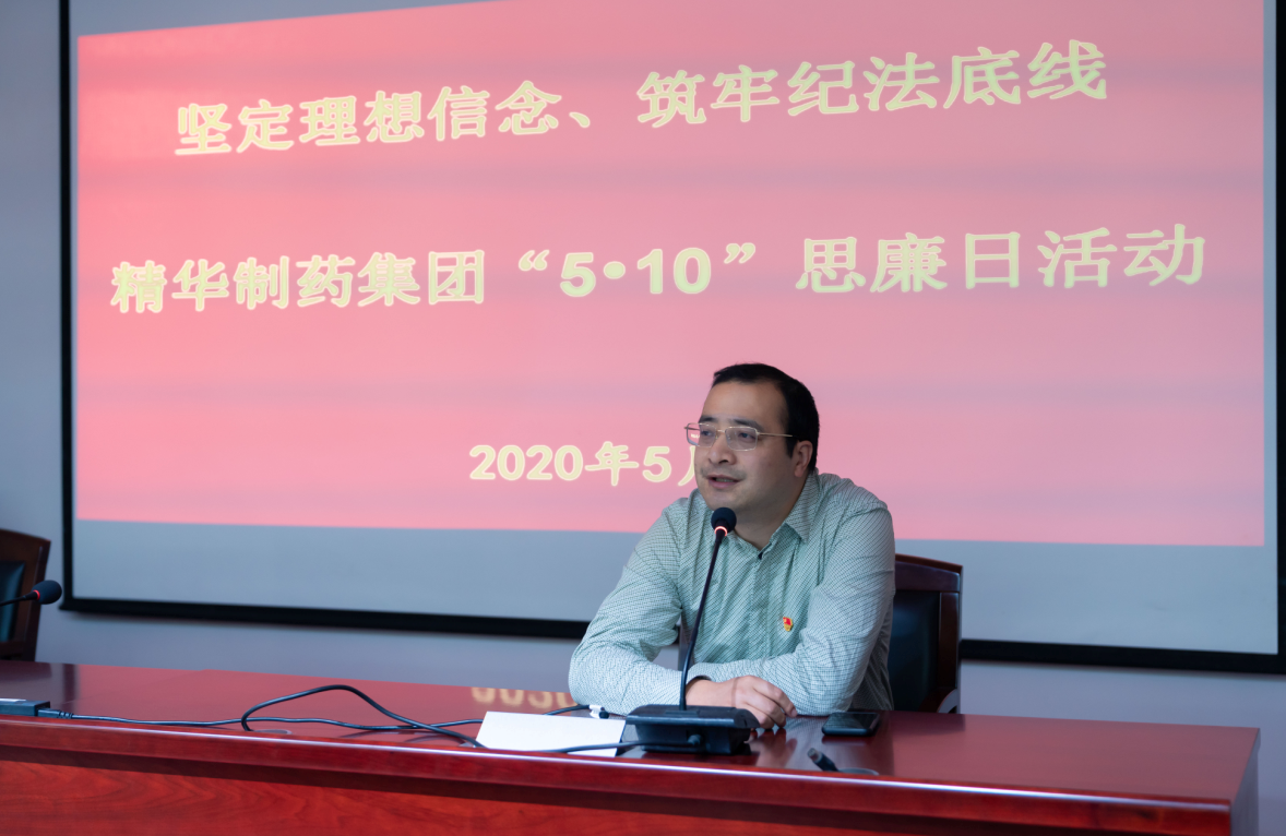 5月11日下午,精華制藥集團(tuán)黨委在三樓會議室組織開展“精華制藥‘5?10’思廉日”警示教育和黨委書記上廉政黨課活動。參加本次活動的有集團(tuán)直屬支部、制劑生產(chǎn)支部、制劑銷售支部和原料藥第一黨支部的黨員干部職工。黨委副書記錢衛(wèi)峰主持了本次活動。