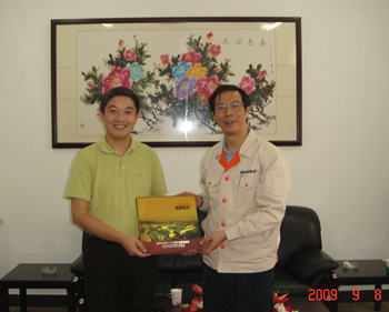 昆明機(jī)床總經(jīng)理張曉毅向陳董事長(zhǎng)贈(zèng)送廠慶紀(jì)念品 |