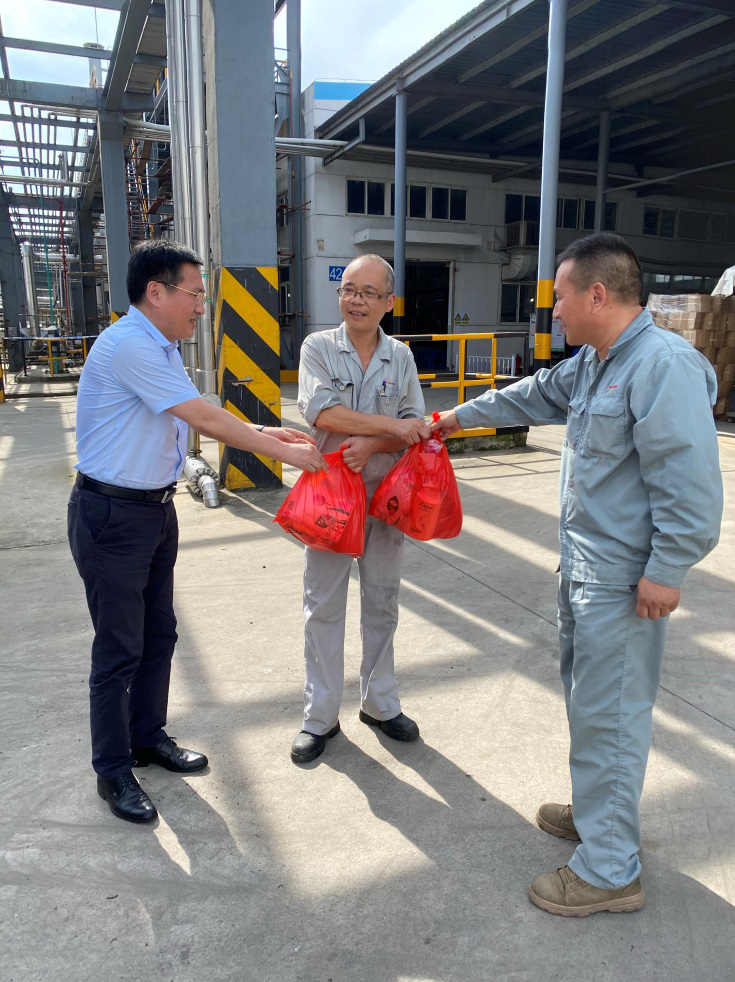 近日,連日高溫,驕陽似火。8月 6日下午,南通國泰創(chuàng)業(yè)投資有限公司黨總支書記、總經(jīng)理沈利帶領(lǐng)綜合管理部、資產(chǎn)管理部的相關(guān)同志到江山農(nóng)化、興盛木業(yè)等公司,看望、慰問酷暑中仍堅守奮戰(zhàn)在生產(chǎn)一線的公司職工,讓他們在炎炎夏日里感受到組織的關(guān)懷與溫暖。