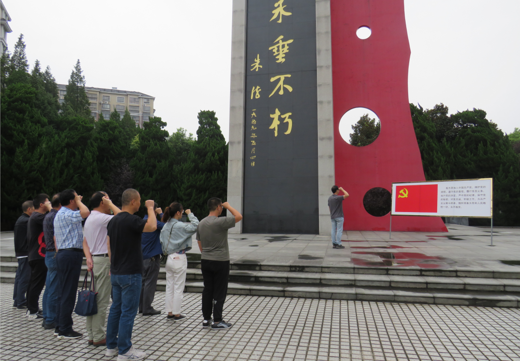 烈士陵園內(nèi),莊嚴(yán)肅靜。由朱德偉人親筆題詞的“革命烈士永垂不朽”紀(jì)念塔屹立在陵園廣場,在紀(jì)念塔下,由黨支部副書記凌德均領(lǐng)讀,全體黨員高舉右手,再次莊嚴(yán)宣誓,重溫入黨誓詞。