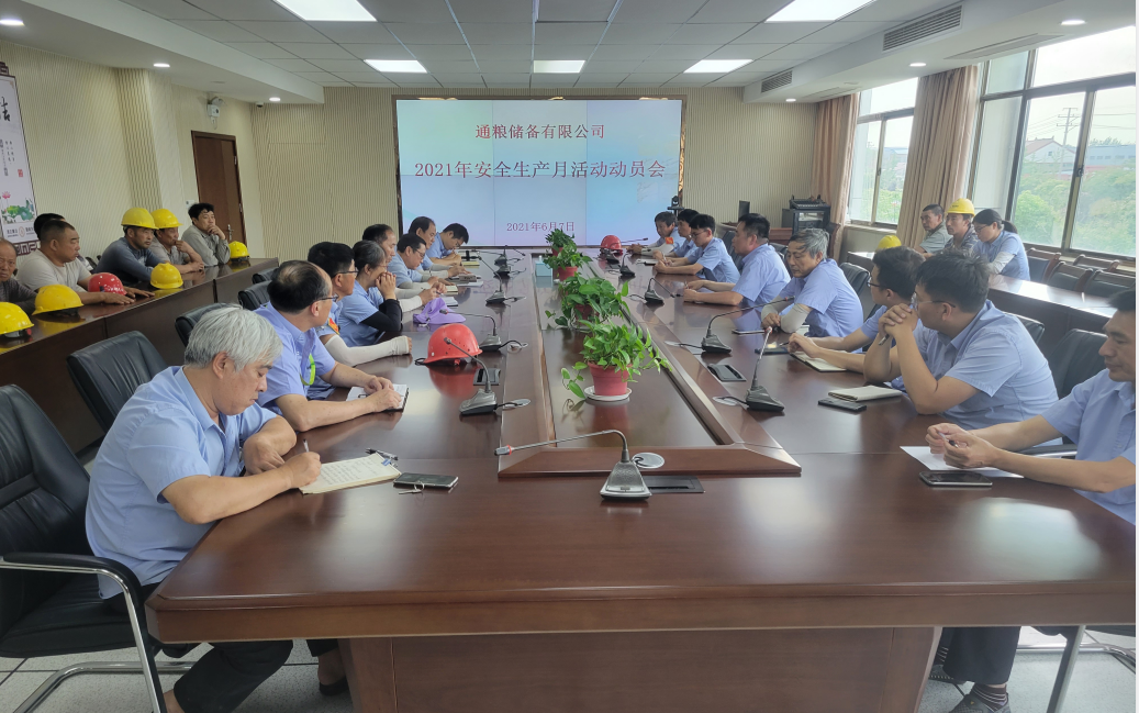 為全面貫徹習近平總書記關(guān)于安全生產(chǎn)的重要論述和黨中央、國務(wù)院關(guān)于安全生產(chǎn)重大決策部署,按照《關(guān)于產(chǎn)控集團組織開展2021年“安全生產(chǎn)月”活動的通知》文件要求,6月7日下午,南通通糧糧食儲備有限公司緊扣“落實安全責任,推動安全發(fā)展”這一主題,召開“安全生產(chǎn)月”活動動員會,旨在進一步樹牢安全發(fā)展理念,強化全員安全責任,推動公司安全生產(chǎn)工作上一個新臺階。全體在崗職工和外包工人參加此次動員會。