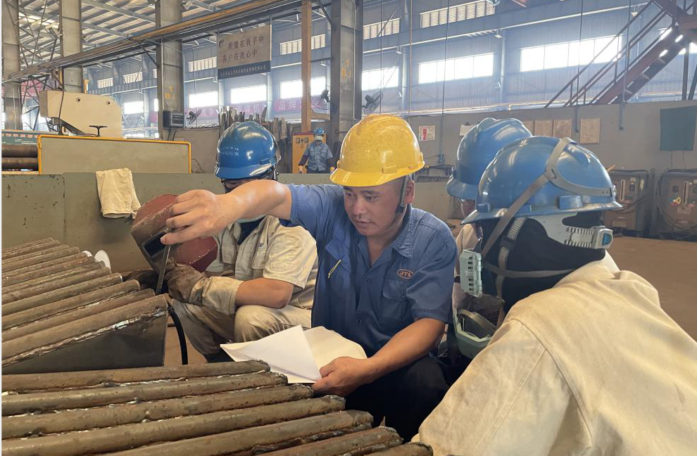 金通靈,一個有著深厚歷史底蘊的企業(yè),是孕育勞模的沃土,多年來,培養(yǎng)出3名省勞動模范,6名市勞動模范,1名區(qū)勞動模范,2018年6月,金通靈成立了勞模集群黨支部,充分發(fā)揮勞模示范效應,引領產(chǎn)業(yè)工人加入到創(chuàng)新驅(qū)動發(fā)展的行列,助力企業(yè)發(fā)展。尹芬興便是勞動模范中的代表人物,今年他被評為“江蘇省勞動模范”,年近五十的他已在金通靈走過26年的青春歲月。當年尹芬興從安徽老家出來時,他還不到20歲,憑著一腔熱血和對未來美好的憧憬來到南通工作。他把勞動當做樂趣,跟同事們交流經(jīng)驗、切磋手藝,共同解決工作中遇到的難題是他工作的常態(tài)。26年來,他不斷摸索,不斷學習,不斷提升,積極發(fā)揮勞模示范帶頭作用,帶領團隊成員積極投身到創(chuàng)新工作中,多年來攻克多個技術難題。其中“兩節(jié)身”前盤的成型技術,低溫升蒸汽壓縮機組合成型免加工藝加強圈技術,干熄焦煤氣風機制作工藝改進等創(chuàng)新成果不僅節(jié)約了大量生產(chǎn)成本、縮短生產(chǎn)時間,更保證了產(chǎn)品質(zhì)量,為公司創(chuàng)造了巨大經(jīng)濟效益。如今的尹芬興是葉輪成型組一組組長,每日負責的事情繁雜,他卻總能一絲不茍地完成,臟活、累活搶著干,白色工作服印著他斑斑勞動的印記,也承載了他一路奮斗的榮光。26年來,他始終把“愛一行、干一行、專一行”作為工作的信條,以此激勵自己在工作崗位上奮發(fā)成才。就是憑著這樣的信念,他在一線崗位上堅守了二十余年,用堅持堅毅的姿態(tài)詮釋著勞模精神,讓勞模精神發(fā)光發(fā)熱。今年,尹芬興光榮地加入中國共產(chǎn)黨,高舉右拳,在黨旗下莊嚴宣誓,他黝黑發(fā)亮的面龐上印刻著堅定的信仰,從此,懷揣著共產(chǎn)黨人的初心使命,他又踏上了新的征途。