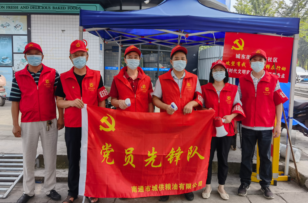 黨旗所指,團旗所向。為充分發(fā)揮黨員先鋒模范作用,青年帶頭作用,城供公司成立了黨員先鋒隊、青年突擊隊。27日下午,張垛儲備庫青年突擊隊成員們利用工作外時間前往海安市雅周鎮(zhèn)興雅社區(qū),穿上紅馬夾,戴上紅帽子,為進入小區(qū)居民測體溫、查看行程碼;公司本部青年突擊隊隊員們伴隨烈日,前往濠東社區(qū)開展除草、地面清潔等志愿服務,經(jīng)過大家共同勞動,社區(qū)面貌得到了較大改善。