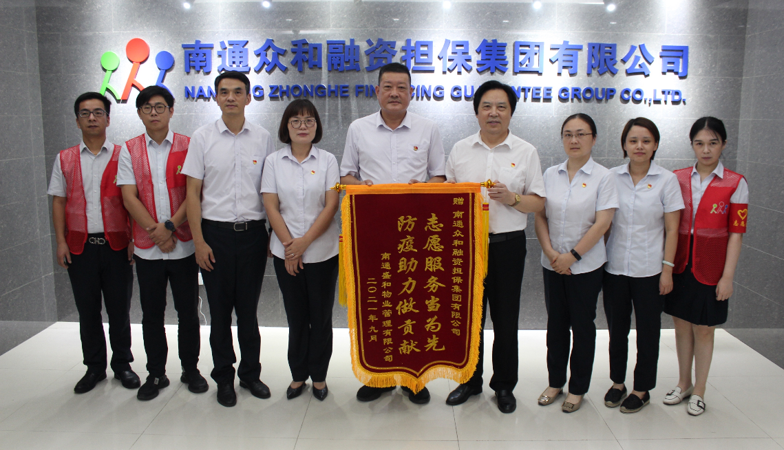 9月6日下午,南通盛和物業(yè)有限公司黨支部書記兼總經(jīng)理劉曉軍、副總經(jīng)理高曉蓉一行向眾和擔(dān)保送來了印有“志愿服務(wù)當(dāng)為先 防疫助力做貢獻(xiàn)”字樣的錦旗,誠(chéng)摯感謝眾和擔(dān)保在盛和物業(yè)駐啟瑞廣場(chǎng)防疫工作人手緊張的關(guān)鍵時(shí)期,迅速組建了一支40名青年黨員、業(yè)務(wù)骨干構(gòu)成的“兩在兩同 同心抗疫”志愿者服務(wù)隊(duì)。他們利用工作之余,起早貪黑,放棄午休,不辭辛苦,堅(jiān)守在防疫一線。從測(cè)溫驗(yàn)碼到秩序維護(hù),從交通疏導(dǎo)到卡口管理,哪里需要就到哪里,為啟瑞物業(yè)防疫工作作出了積極貢獻(xiàn),也得到了啟瑞廣場(chǎng)業(yè)主的點(diǎn)贊,充分彰顯了國(guó)有企業(yè)責(zé)任擔(dān)當(dāng)。