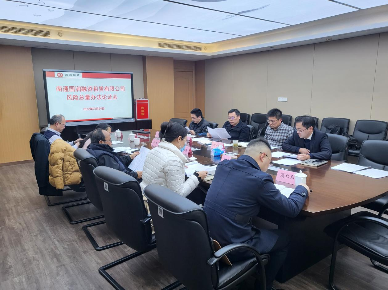 為推動(dòng)公司高質(zhì)量發(fā)展,加快轉(zhuǎn)型升級(jí)、控制經(jīng)營風(fēng)險(xiǎn),國潤(rùn)租賃邀請(qǐng)市金融局、國資委和銀行、法律等方面專家,共同對(duì)《國潤(rùn)租賃風(fēng)險(xiǎn)總量管理辦法》進(jìn)行研究論證。