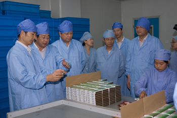 9月12日上午,南通市政府朱晉副市長、陸善平副秘書長一行來到精華制藥集團(tuán)股份有限公司調(diào)研醫(yī)藥產(chǎn)業(yè)發(fā)展工作。在王氏保赤丸生產(chǎn)車間,朱市長詳細(xì)詢問了產(chǎn)品銷售、市 場前景、質(zhì)量控制等方面的情況,他強調(diào),精華制藥集團(tuán)擁有王氏保赤丸、季德勝蛇藥片等一批療效確切的知名產(chǎn)品,企業(yè)要在發(fā)揮品牌影響、加強質(zhì)量管控、擴大企業(yè)規(guī)模、促進(jìn)轉(zhuǎn)型升級上下功夫。朱市長要求食品藥品監(jiān)管部門要進(jìn)一步加強服務(wù)力度,在加強藥品質(zhì)量監(jiān)管、保障藥品質(zhì)量安全的同時,發(fā)揮職能優(yōu)勢幫助企業(yè)解決發(fā)展中的突出問題。 南通市食品藥品監(jiān)管局戴輝局長、市政府辦公室孫寶軍副主任陪同調(diào)研,精華制藥朱董事長匯報了企業(yè)的基本情況和促進(jìn)醫(yī)藥產(chǎn)業(yè)發(fā)展的思路和舉措。
