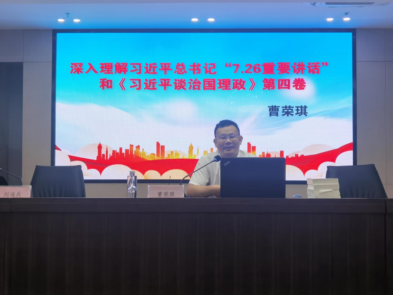 8月30日上午,國融公司召開專題學習會暨主題黨日活動,學習習近平總書記“7.26重要講話”和《習近平談治國理政》第四卷,邀請南通市通州區(qū)委宣傳部副部長、新聞出版局局長曹榮琪作專題授課。學習活動由公司黨委書記、董事長、總經(jīng)理劉海兵主持,全體員工參加了此次學習。