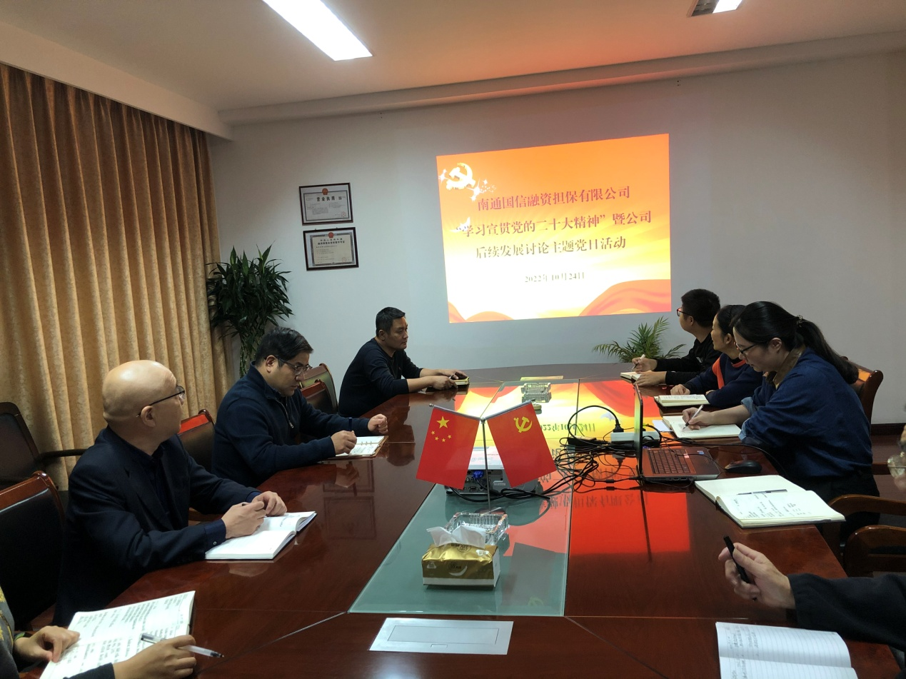 10月24日下午,國(guó)信擔(dān)保公司黨支部組織開(kāi)展了“學(xué)習(xí)宣貫黨的二十大精神”暨公司后續(xù)發(fā)展討論主題黨日活動(dòng),公司全體工作人員參加了活動(dòng)。