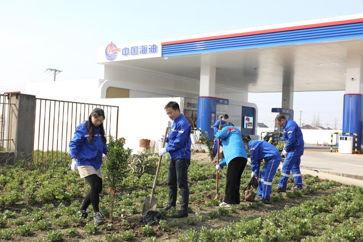 近期,中海油南通公司黨支部組織黨員、青年員工,利用加油站空地,齊心協(xié)力種植綠樹、栽下果樹苗,開展給生態(tài)加“綠”,為油站添“彩”為主題的系列活動(dòng),號召廣大青年員工積極植樹,保衛(wèi)藍(lán)天碧水、綠化美好油站。