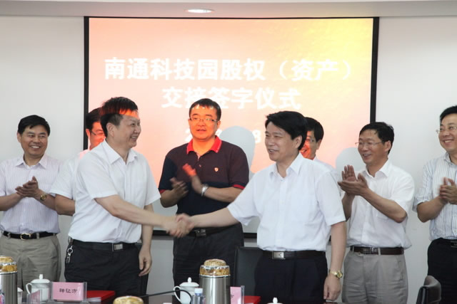 7月15日,南通科技園股權(quán)交接簽字儀式在產(chǎn)控集團(tuán)會議室舉行。南通市科技局局長朱千波、產(chǎn)控集團(tuán)董事長杜永朝代表交接雙方簽訂交接協(xié)議,黃愛軍副市長、王國平副秘書長、財政局潘衛(wèi)斌副局長、國資委曹康副主任、規(guī)劃局徐相東副局長、科技局沈衛(wèi)堅副局長、產(chǎn)控集團(tuán)錢衛(wèi)峰副總經(jīng)理、南通科技園沈風(fēng)雷總經(jīng)理等參加簽字儀式并為簽約見證。 本次劃轉(zhuǎn)給產(chǎn)控集團(tuán)的資產(chǎn)包括南通科技園持有的科技園、軟件園和機(jī)電園3個園區(qū)的土地和房屋,全部權(quán)益價值約8.8億元,賬面總資產(chǎn)約5.3億元。產(chǎn)控集團(tuán)董事長杜永朝表示,資產(chǎn)移交后,產(chǎn)控集團(tuán)將整合好南通科技園現(xiàn)有資源,加快南通產(chǎn)業(yè)技術(shù)研究院有限公司的組建工作,按照市委、市政府“全面落實(shí)科技創(chuàng)新工程,加快推進(jìn)我市國家創(chuàng)新型城市建設(shè)”的總要求,努力做好資產(chǎn)管理、項目引進(jìn)、園區(qū)建設(shè)和成果轉(zhuǎn)化等工作,力爭通過幾年努力,把南通產(chǎn)業(yè)技術(shù)研究院建成在國內(nèi)外具有較強(qiáng)影響力和特色明顯的產(chǎn)業(yè)技術(shù)創(chuàng)新中心和科技創(chuàng)新示范區(qū)。南通市科技局朱千波局長代表資產(chǎn)移交方發(fā)言時指出,產(chǎn)控集團(tuán)作為國有控股公司有更多的市場資源和市場經(jīng)驗,可以更好的整合南通科技園資產(chǎn)。他表態(tài)說,市科技局將一如既往的支持南通產(chǎn)業(yè)技術(shù)研究院的建設(shè)、發(fā)展工作,讓產(chǎn)業(yè)研究院積聚更多的科技資源,為南通市穩(wěn)發(fā)展、促轉(zhuǎn)型提供更多支持。 黃愛軍副市長最后做重要講話。他指出,南通產(chǎn)業(yè)發(fā)展走科技創(chuàng)新之路是必然趨勢,但依靠科技來發(fā)展經(jīng)濟(jì)又會面臨投入大、過程長、結(jié)果不確定、企業(yè)不習(xí)慣等問題,是一個痛苦而漫長的過程。南通科技園股權(quán)、資產(chǎn)從南通科技局整體劃轉(zhuǎn)到南通產(chǎn)業(yè)控股集團(tuán),是市委、市政府為南通產(chǎn)業(yè)園區(qū)發(fā)展選擇的一條新路,是一條不同于其他城市的市場化發(fā)展道路。產(chǎn)控集團(tuán)要把市場機(jī)制引入產(chǎn)業(yè)研究院,激發(fā)科研創(chuàng)新主體的活力,努力把產(chǎn)控集團(tuán)自身轉(zhuǎn)型升級的需要和產(chǎn)業(yè)研究院的發(fā)展結(jié)合起來,促進(jìn)科技和產(chǎn)業(yè)的融合發(fā)展。黃愛軍副市長要求,產(chǎn)控集團(tuán)要從科技局手里接好棒,按計劃和時間節(jié)點(diǎn)要求完成產(chǎn)業(yè)研究院的組建及運(yùn)營工作,將科研創(chuàng)新與市場運(yùn)作緊密結(jié)合,力爭早出成果,出大成果,努力為全市經(jīng)濟(jì)社會的協(xié)調(diào)發(fā)展做出更大貢獻(xiàn)!