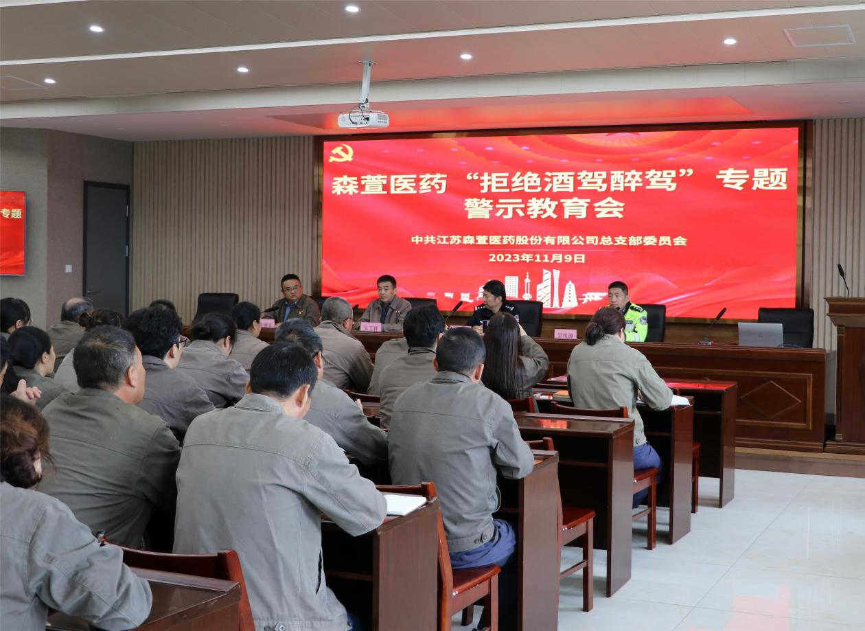 為深入落實全面從嚴(yán)治黨要求,加強杜絕酒駕醉駕宣傳教育,進一步增強公司員工交通安全法治觀念,筑牢紀(jì)律規(guī)矩意識和底線思維,11月9日,森萱醫(yī)藥開展了2023年度第二期、總第九期“森萱小講壇”—交通法規(guī)知識培訓(xùn)暨“拒絕酒駕醉駕”專題警示教育活動。精華集團常務(wù)副總經(jīng)理、森萱醫(yī)藥黨總支書記、董事長吳玉祥、森萱醫(yī)藥總經(jīng)理袁擁軍、公司全體黨員、各職能部門管理人員及生產(chǎn)車間班組長以上管理人員近百人共同參與了本次活動。