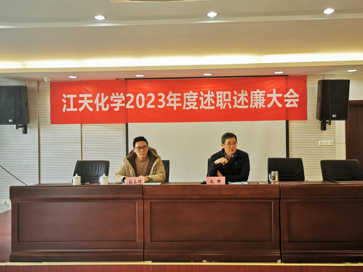 1月23日,江天化學(xué)組織召開中層干部年度述職述廉暨民主評(píng)議會(huì)議。公司董事長(zhǎng)、總經(jīng)理朱輝出席會(huì)議,會(huì)議由公司黨支部書記、副總經(jīng)理張永鋒主持。