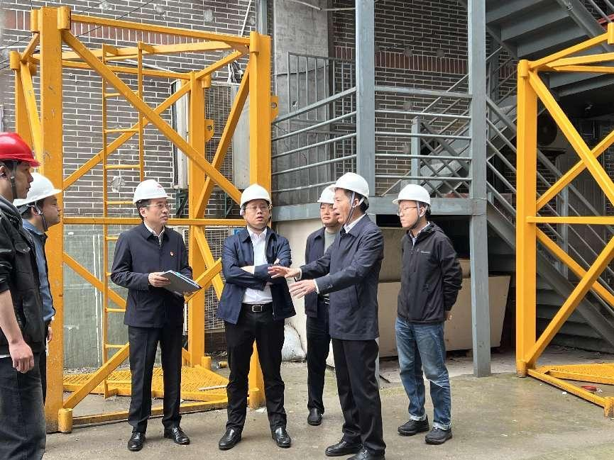 4月28日,產控集團黨委書記、董事長張劍橋,黨委委員、副總經理張建,安全總監(jiān)陸建棟,資產經營部副部長郭旭東一行對崇海飯店翻建項目開展節(jié)前安全檢查。國融公司黨委書記、董事長沈利,總經理吉東及陽光代建項目負責人、南通一建項目經理、眾辰監(jiān)理項目總監(jiān)等陪同檢查。